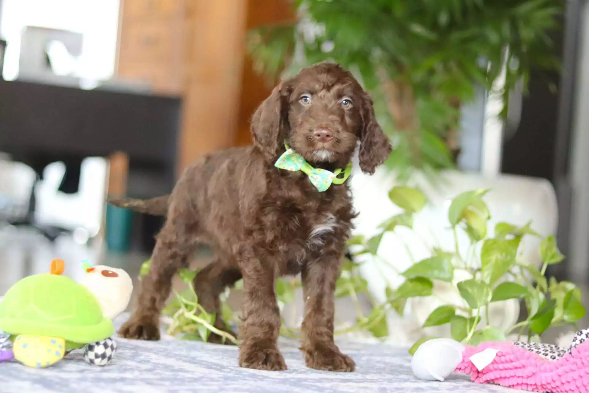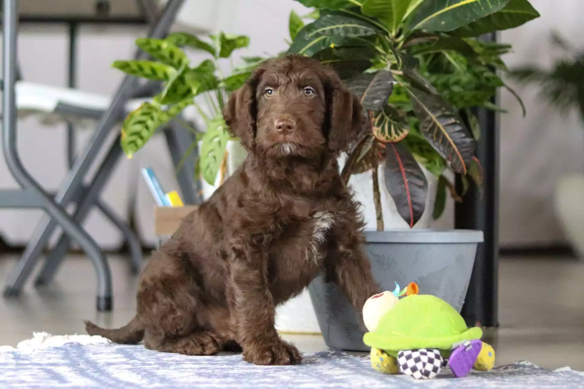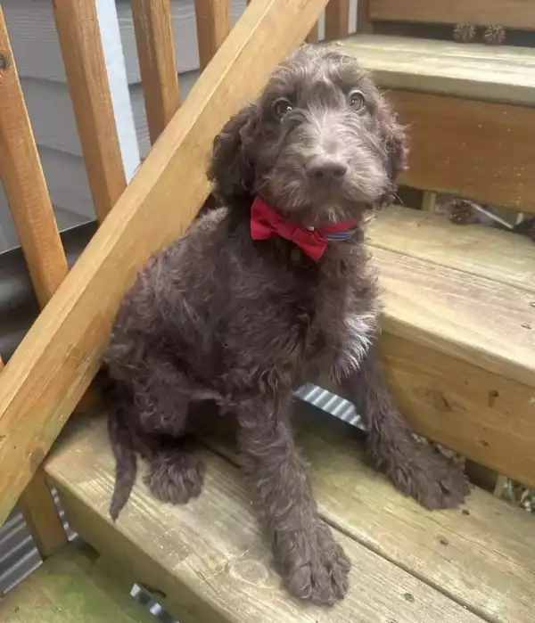 I’m Marcel, a wavy chocolate Labradoodle boy—gentle, goofy, and full of love. I love making my family laugh with silly leaps, zoomies in the yard, and parading my favorite toys around the house. After playtime, you’ll find me ready for a snuggle, eager to spread warmth and happiness to everyone I meet. My playful antics and sweet nature make every day brighter and bring plenty of joy and comfort to my home.